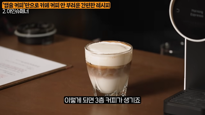다만, 너무 진한 걸 싫어할 경우에는 얼음을 넣어서 살살 녹여가면서, 진한 에스프레소 향을 그대로 즐기고 싶다면 얼음은 빼고 커피 액과 거품만 넣어서 먹으면 좋다고 덧붙였다.