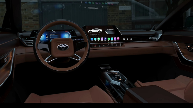 렌더링 속 코롤라의 전면부는 현행 모델과 유사한 듯하지만, 한층 더 날카롭고 역동적인 라인으로 차별점을 뒀다. 근육질의 펜더 상단부와 깔끔하게 다듬어진 측면 라인이 인상적이며, 얇고 날카롭게 처리된 헤드램프는 기존의 해머헤드 디자인을 현대적으로 재해석한 모습이다.