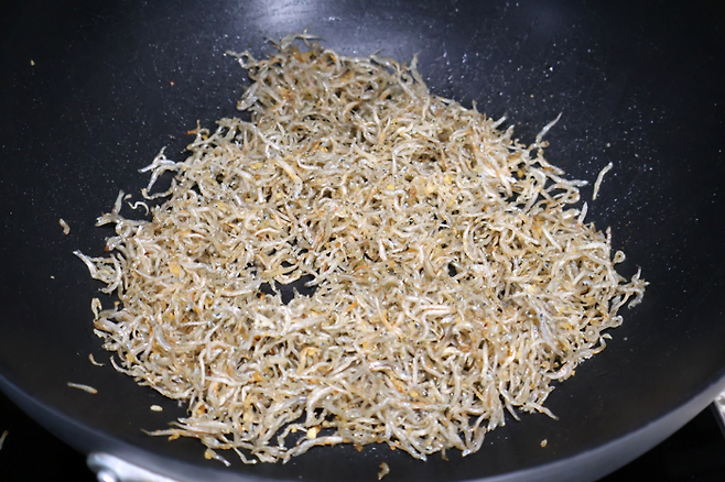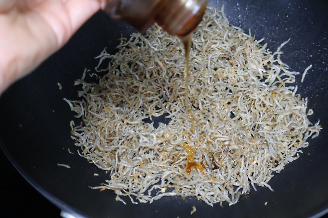 냉장고에 너무 오래 있던 멸치는 수분을 먹어서 눅눅해지는데, 너무 눅눅한 상태라면 마른 팬에서 가볍게 볶아 수분을 날린 다음 요리하면 쩐내도 줄일 수 있고 훨씬 맛있어요. 저는 사다둔 지 얼마 되지 않은 거라 바로 요리를 시작했답니다.