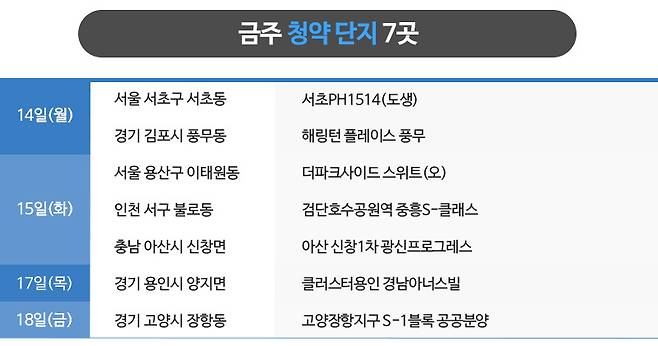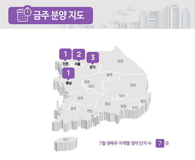 부동산인포에 따르면 7월 3주 청약에 나서는 곳은 7곳, 5910가구 입니다(총 가구수 기준).