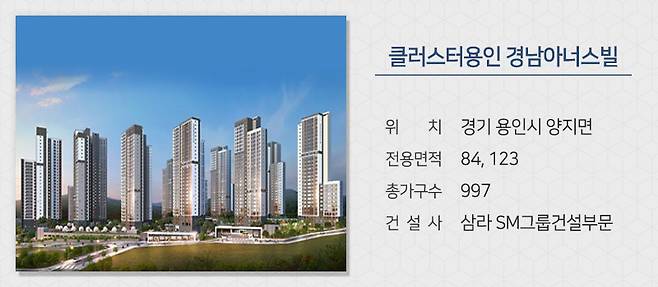 경기 용인시에서는 삼라 SM그룹건설부문이 양지면 양지리 일원에 짓는 ‘클러스터용인 경남아너스빌’을 분양합니다. 차로 10분 거리에 조성중인 용인 반도체 클러스터가 있습니다. 차로는 서울~세종고속도로를 이용해 서울로 30분대 진입이 가능하며 영동고속도로 등으로도 빠르게 이동이 가능합니다.