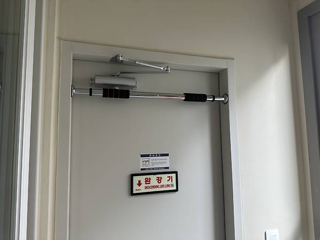 대피소 문틀에 턱걸이 설치는 어떨까요?