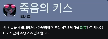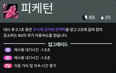 대신 대시 후 0.1초의 투사체 무적 시간이 존재하는데, 대시 순간이 아니라 대시 후이기 때문에 솔직히 교전중에 노리고 쓰긴 힘듭니다. 공중 글라이딩으로 도망갈 때 좀 더 안전하게 도망칠 수 있다 정도로 생각합시다.