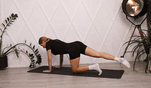 손과 무릎을 바닥에 대고 네발기기 자세로 시작합니다. 오른발을 뒤로 곧게 펴서 공중으로 뻗으며 킥 동작을 합니다. 무릎을 완전히 펴고, 발끝까지 뻗어 엉덩이에 힘을 줍니다. 다리를 원위치로 내리고, 동작을 반복합니다.