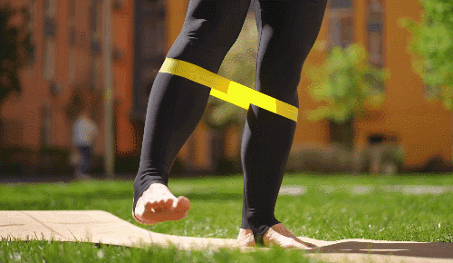 저항 밴드를 허벅지나 발목에 착용하고 매트 위에 섭니다. 오른쪽 다리를 옆으로 들어 올리며 다리 외측을 자극합니다. 허리와 복부에 힘을 주어 상체가 흔들리지 않도록 고정합니다. 반복한 후, 왼쪽 다리도 같은 방식으로 운동합니다.