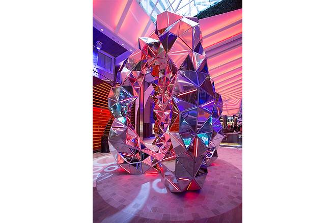 영화 [캐리비안의 해적]과 이름이 비슷해서일까. 현실이라면 몸을 사리겠지만, 괜스레 높은 파도가 치는 바다 한가운데 서 있는 상상을 하게 만드는 크루즈다. 우리나라에도 잘 알려진 ‘로열 캐리비안 크루즈’는 바다 위에 떠 있는 대기업과 다름없다. 산하에 육지의 모든 활동을 즐길 수 있는 대형 선박만 30여 척이 있을 정도. 크루즈 회사마다 자신의 정체성을 나타내는 표현이 있는데, 로열 캐리비안 크루즈가 사용하는 건 ‘OF THE SEAS’. 마치 바다의 모든 것을 끌어안겠다는 의지로 읽힌다. 컬렉션 규모도 어마어마하다. 회사가 소유한 도자기, 사진, 조각, 회화 등 가치만 약 1550억 원을 뛰어넘는다고. 공개하는 작품은 선박마다 다르다. 대표적으로 ‘Quantum of the Seas’에서는 앤디 워홀의 자화상과 폴 빌린스키(Paul Villinski)의 나비 조각 등을, ‘Harmony of the Seas’에서는 체코 조각가 데이비드 체르니(David Cerny)와 미국 디자인 스튜디오 볼-노구스(Ball-Nogues) 등의 작품을 마주할 수 있다. 그야말로 격동의 미술신과 모험의 바다가 만나는 순간이다.