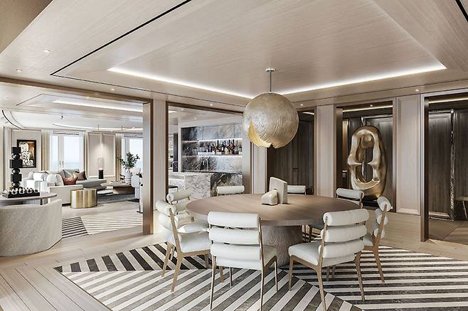 실버시 크루즈(Silversea Cruises)의 ‘실버 노바(Silver Nova)’는 올여름 첫 운행을 시작한 따끈따끈한 신상 크루즈다. 첨단 하이브리드 기술을 적용한 덕분에 친환경 선박으로도 벌써 정평이 났다. 신성(nova, 어둡던 별이 갑자기 폭발하여 밝아짐)처럼 나타난 신상 크루즈를 상징하는 것으로는 로마인 생활 방식을 본떠 기획안 웰니스 프로그램, 정박하는 곳에서 얻은 신선한 재료로 만든 음식 등을 꼽을 수 있다. 한 번 배에 오르면 몸과 마음을 재충전할 수 있어 벌써 크루즈 애호가들의 이목을 집중시키고 있다고. 여기엔 미술품 컬렉션도 한몫한다. Silver Nova 컬렉션은 작가 59명의 작품 1800여 점으로 이뤄진다. 오랫동안 실버시 크루즈 홍보대사로 활동한 사진작가 스티브 맥커리(Steve McCurry)의 작품은 빙산의 일각. 15~16세기 이탈리아 전통 예술 방식을 회복한다는 목적 아래 20세기 초 등장한 노베센토(Novecento) 그룹의 프란체스코 메시나(Francesco Messina)가 제작한 청동 조각, 최초의 근대 지도인 ‘세계의 무대(Theatrum Orbis Terrarum)’ 등을 직접 눈으로 확인할 수 있어 마치 미술관, 아니 박물관에 온 듯한 착각을 일으킨다.
