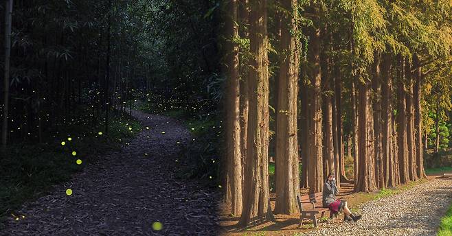 익산 가볼만한곳 첫 번째는 구름마을 대나무숲입니다. 한적한 구름마을, 특히 대나무숲은 사람들이 많이 방문하지 않아 한적하고 조용히 나만의 시간을 보낼 수 있는 힐링명소인데요. 낮에는 평범한 대나무숲이지만 저녁에는 반딧불이가 아름다운 절경을 만들어내 감동을 주는 곳입니다.