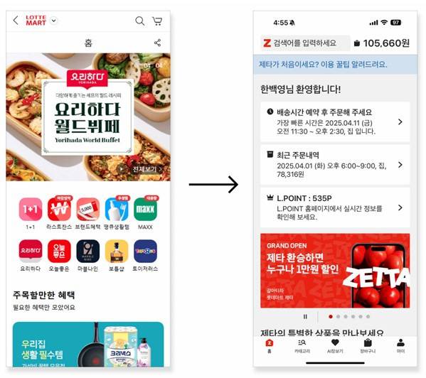 온라인 전용 앱 롯데마트몰을 ‘롯데마트 제타’로 전환한 것이다. 이 변화는 단순히 새롭게 브랜딩하고 디자인을 바꾸는 수준이 아니었다.