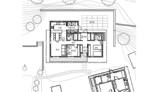 교편을 내려놓고 은퇴한 건축주는 연로한 부모님 곁에 머무르기 위해 귀촌 후 집을 짓고자 했다. 부모님을 모시기 위함이지만, 한편으론 이제 막 인생 제2막을 열어젖힌 건축주 부부 본인들의 삶을 위한 집이기도 해야 했다. 건축주는 건축사사무소 익히의 두 소장과 함께 고민했다. ‘한 울타리 안 두 가족’, 그리고 ‘농가의 삶’ 두 가지를 한 집에 녹여내고자 했다. 장고 끝에, 완전 철거 후 신축 대신 본채-행랑채-창고 구성의 구옥에서 행랑채를 철거하고 그 자리에 작은 규모의 새집을 짓는 것으로 결론을 내렸다.