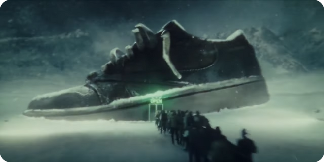 Q. 나이키와 트래비스 스캇이 협업하여 제작한 에어 조던 1 로우 광고에서 AI 기술이 활용된 방식으로 올바른 것은 무엇일까요?