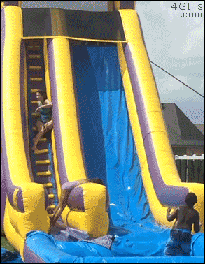 워터파크 즐기는 리트리버.gif