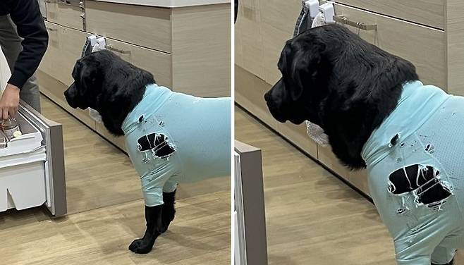 저런 옷을 입히니 괜히 강아지에게 미안해지는데요 ㅎㅎ