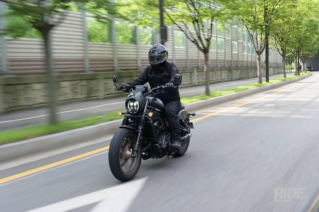 도로 위에서 경험하는 레블1100 SE DCT의 느낌을 한마디로 정의하자면 여유라고 설명할 수 있다. 레블을 타본 사람들은 알겠지만 엄청나게 편한데 라이딩 하면서 신경 쓸 게 정말 하나도 없기 때문이다. 오로지 스쿠터만 타다가 크루저로 변경한 라이더가 레블을 탄다고 가정을 해본다면 스쿠터에는 없던 기어 변속이라든지 그런 것들을 DCT 때문에 전혀 신경 쓰지 않아도 되고 그냥 편하게 타기만 하면 된다. 스쿠터와 비교한다면 바뀌는 점은 브레이크를 양손으로 잡는 것이 아니라 우측 손과 우측 발로 작동해야 한다는 정도의 변화 정도? 그 정도만 적응한다면 사실 적응이라고 할 만한 것 자체가 없다. 특히나 시트고는 웬만한 스쿠터보다 더 낮은 수준이라서 시트고에 민감한 사람이라면 정말 무조건 앉아보라고 권하고 싶다. 도로에서 신호 대기 시 한발 혹은 까치발로 낑낑대던 사람들도 발뒤꿈치가 다 닿는 마법을 경험할 수 있게 된다.