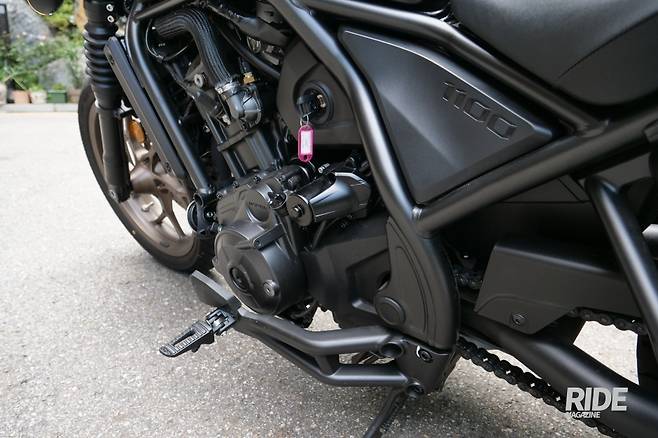 레블 1100 SE DCT의 배기량 1,087cc 직렬 2기통 엔진은 7,250rpm에서 최고출력 88마력을 보여주고 최대토크는 4,750rpm에서 10kgf.m의 힘을 발휘한다. 조금 더 까다로워진 유로5+배기배출가스 인증 기준을 맞추면서도 최대출력이나 최대토크는 크게 변화가 없다. 오히려 출력이 1마력 늘었을 정도로 차이는 딱히 없는데 사실 레블을 타고 있는 사람들은 공감 하겠지만 레블은 이런 스펙상의 숫자들이 크게 중요하지 않은 모델이다. 스로틀을 쥐어짜며 고속으로 타는 모델도 아니거니와 특히 레블 1100 SE DCT 같은 모델은 프론트 페어링이 없으니 바람의 저항 때문에 고속으로 달리지도 못한다.