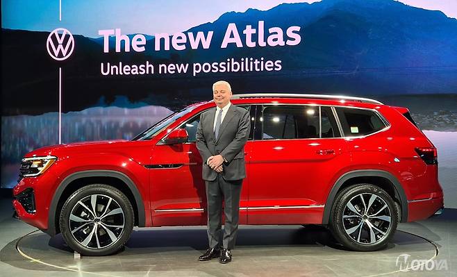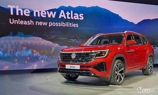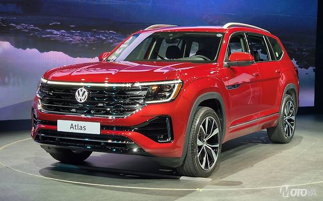 한국 시장에 소개되는 신형 아틀라스는 2024년 미국 시장에 출시된 최신 모델로, 외부 디자인과 인테리어를 대폭 개선하고 신형 엔진을 탑재하는 등 신차급 변경이 이뤄졌다. 특히 아틀라스는 지난해 미국에서 판매된 폭스바겐 모델 중 티구안 LWB에 이어 두 번째로 많은 판매량을 기록했으며, 전년 대비 24.1%[1]의 높은 판매 성장을 달성하는 등 대형 SUV의 본고장인 미국에서 큰 사랑을 받고 있는 베스트셀러 SUV이다.