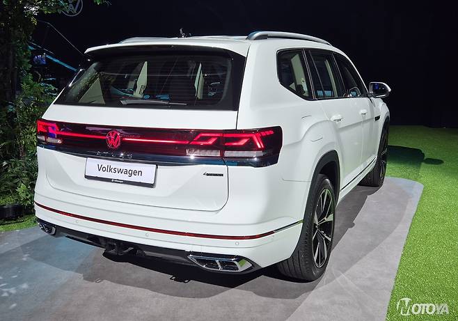 한국 시장에 소개되는 신형 아틀라스는 모터스포츠에서 영감을 받은 R-Line 디자인 패키지가 기본 적용돼 고급스러우면서도 역동적인 디자인을 보여준다. 전면부에는 LED 헤드램프와 라디에이터 그릴을 감싸는 랩어라운드 스타일의 LED 주간주행등(DRL)이 적용됐으며, 차체 중앙의 '일루미네이티드 프론트 로고'와 함께 강렬한 존재감을 드러낸다.