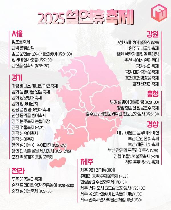2025 설 연휴 가볼만한 곳을 고민하고 계시다면, 전국 곳곳의 축제를 참고해보세요!