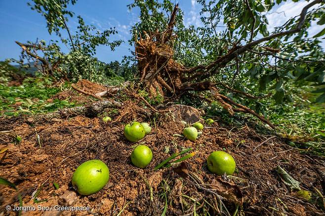 또한 최근에는 작물을 말려 죽이는 과수화상병이 확산하고 있습니다. 과수화상병은 사과와 배 등 과일의 잎, 열매, 가지, 꽃 등을 감염시키는 병입니다. 이 과수화상병을 매개하는 세균은 통상적으로 겨울과 봄 사이에 얼어 죽지만, 따뜻한 겨울이 반복되자 세균의 생존율이 높아진 것입니다. 여기에 더해 최근 장마로 병원균 증식에 좋은 환경이 만들어져, 과수화상병의 피해를 입근 건수도 87건, 피해 면적도 32.9ha에 달합니다. 과수원의 5% 이상이 과수화상병에 걸리면 해당 과수원 전체를 매몰해야 하며, 향후 수년 동안 새로운 작물을 심지 못하게 됩니다.