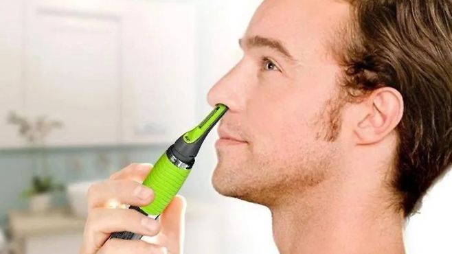 이 과정에서 다칠까 봐 걱정된다면 끝이 둥근 각진 가위를 선택하세요. 우발적인 흠집이나 베임의 위험을 줄이고 접근하기 어려운 부분에 닿을 수 있도록 전략적으로 만들어졌기 때문입니다. 코 안쪽 깊은 곳의 털을 다듬으려면 전기 트리머를 선택하세요. 이 트리머는 안전하고 사용하기 쉬우며 최소한의 노력만 필요합니다.