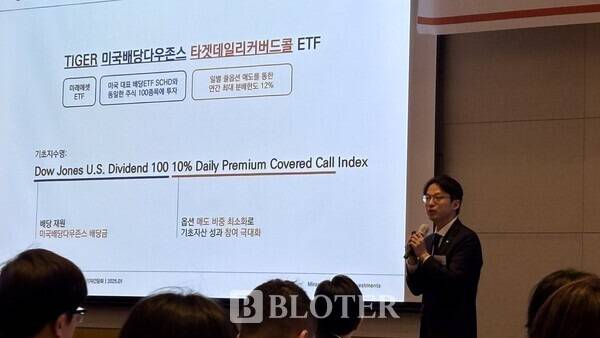 "이번에 선보이는 'TIGER 미국배당다우존스타겟데일리커버드콜 상장지수펀드(ETF)'는 지난 2022년 이후 국내 투자자들에게 꾸준한 사랑을 받아온 미국배당다우존스커버드콜 ETF의 최종판이다."
