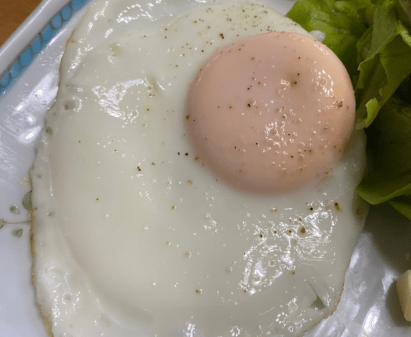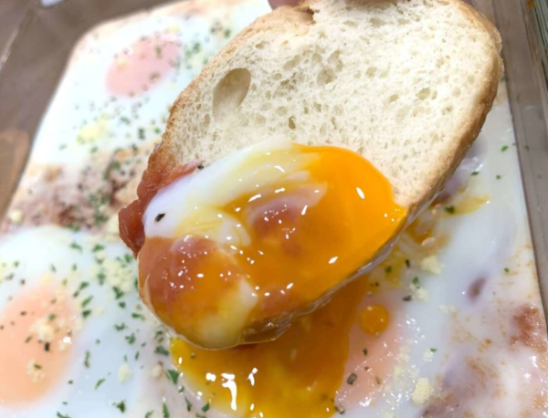 노른자 위에도 살짝씩 버터를 뿌려주면 노란색이 선명하게 살아있으면서도 겉면은 살짝 익어 크리미한 식감을 유지하게 된다. 계란의 표면이 마르지 않고 촉촉하게 유지되기 때문에 마치 수란과 반숙후라이의 중간쯤 되는 부드러운 결과물을 얻게 된다.
