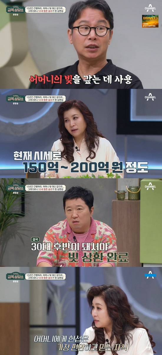 심현섭은 "어머니가 자식 뒷바라지 하려고 스포츠센터를 하셨다. 빚 갚는 걸 지출이라고 생각하지 않았다. 그 당시 15억 원이 됐다"며 90년대 당시 큰 돈이던 빚을 공개했다.