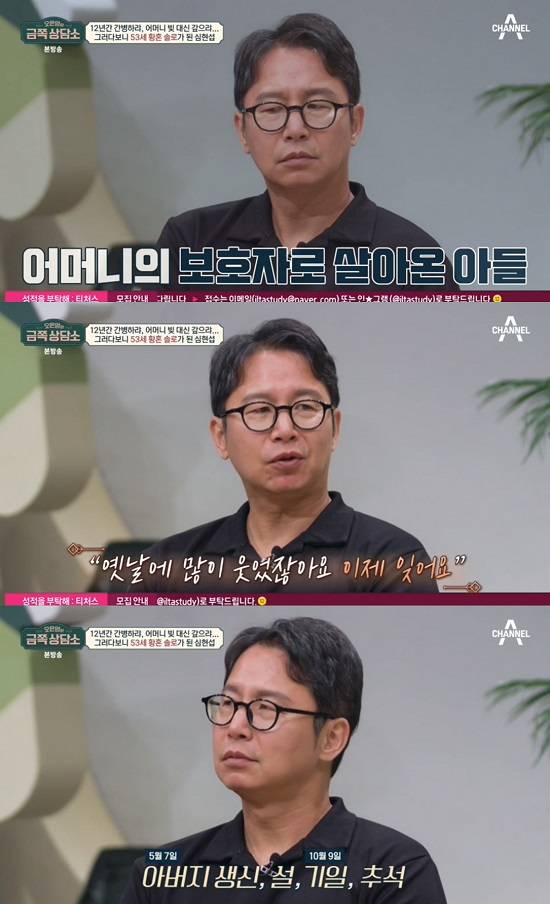 그는 "아들로 최선을 다했지만 부모가 주는 사랑을 충분히 못 받아본 것 같다. 아버지는 일찍 돌아가셨고, 어머니는 아버지를 잃은 슬픔에 묻혀 계셨던 것 같다"고 설명했다.