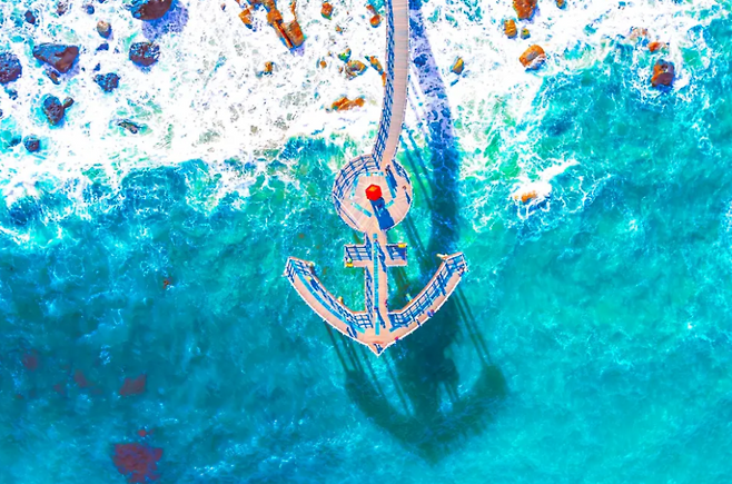 바다 위로 이어지는 102m 데크, 닻 모양에서 시작된 감성