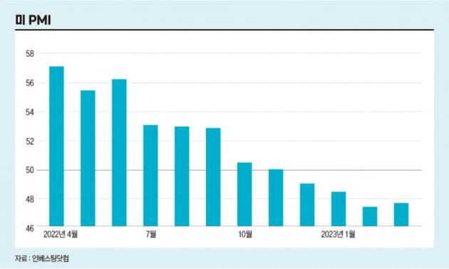 하지만 시선을 조금만 돌리면 다른 이야기가 펼쳐진다. 지난 2월 공급관리협회(ISM)가 발표하는 2월 제조업 구매관리자지수(PMI)는 47.7을 기록했다. PMI는 50을 기준으로 그 이상은 확장, 그 이하는 위축을 나타낸다. 현재 4개월 연속 기준선 50을 밑돌고 있다. 경제 지표에 따르면 이 분야에 수많은 신규 고용이 일어나고 있음에도 실질적인 산업 생산은 급격히 둔화되고 있다는 의미다. 제조업 신규 주문 규모 또한 지난 2월 기준 6개월 연속 감소세다. ISM에 따르면 글로벌 경제의 불확실성과 지정학적 긴장 속에서 최근 금리 인상 등의 영향으로 미국 달러가 강세를 보이면서 미국 수출 주문이 7개월 연속 감소한 것으로 나타나고 있다. 제조업이 미 GDP에서 차지하는 비율은 11%다. 하지만 경제의 뿌리나 마찬가지인 제조업의 부진은 강력한 ‘경기 침체’의 신호다. 많은 이들이 PMI를 심상치 않게 바라보고 있는 이유다.