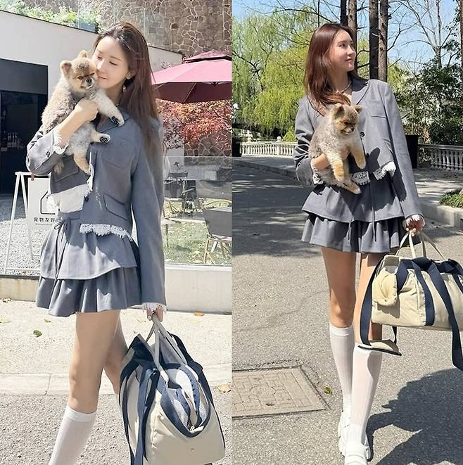 공개한 사진에서 이다해는 화이트 블라우스에 그레이 클롭 재킷을 입고 러플 포인트가 더해진 미니 플레어스커트 셋업의 프레피룩으로 걸그룹 같은 미모를 드러냈다.