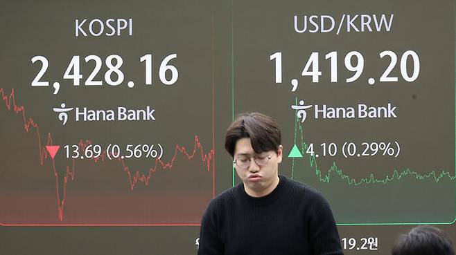 환율은 지난달 29일 1,394.7원에서 지난 6일 1,419.2원으로 오르며 1,400원대가 고착화하는 모습이었습니다.