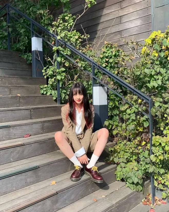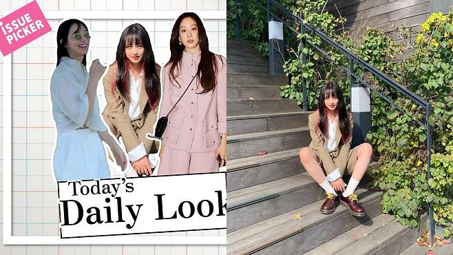 김보라는 클래식한 체크 패턴의 오버사이즈 재킷과 동일 소재 버뮤다팬츠를 매치해 시선을 사로잡았다. 무릎 위 기장의 반바지는 여유 있는 폭으로 제작돼 재킷과 함께 착용했을 때 안정감 있는 실루엣을 만든다.