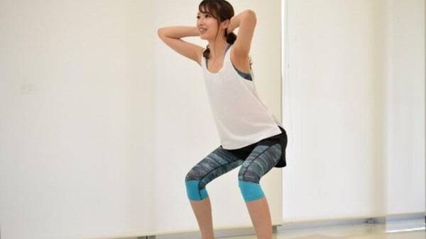 스쿼트를 할 때는 어깨너비로 발을 벌리고, 허리를 곧게 편 상태에서 엉덩이를 뒤로 빼며 무릎을 90도 정도 굽혀줍니다.