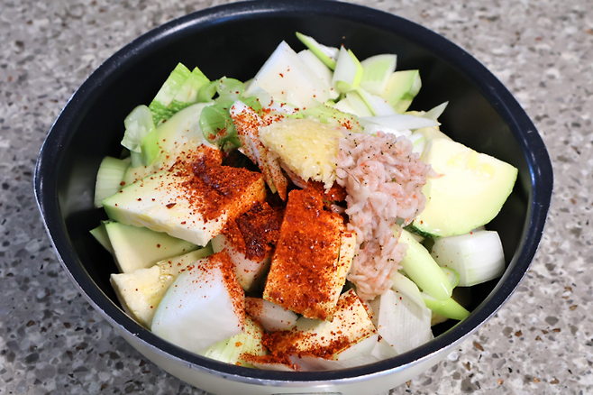 새우젓 1큰술, 고춧가루 1큰술, 다진마늘 1큰술, 식용유 약간