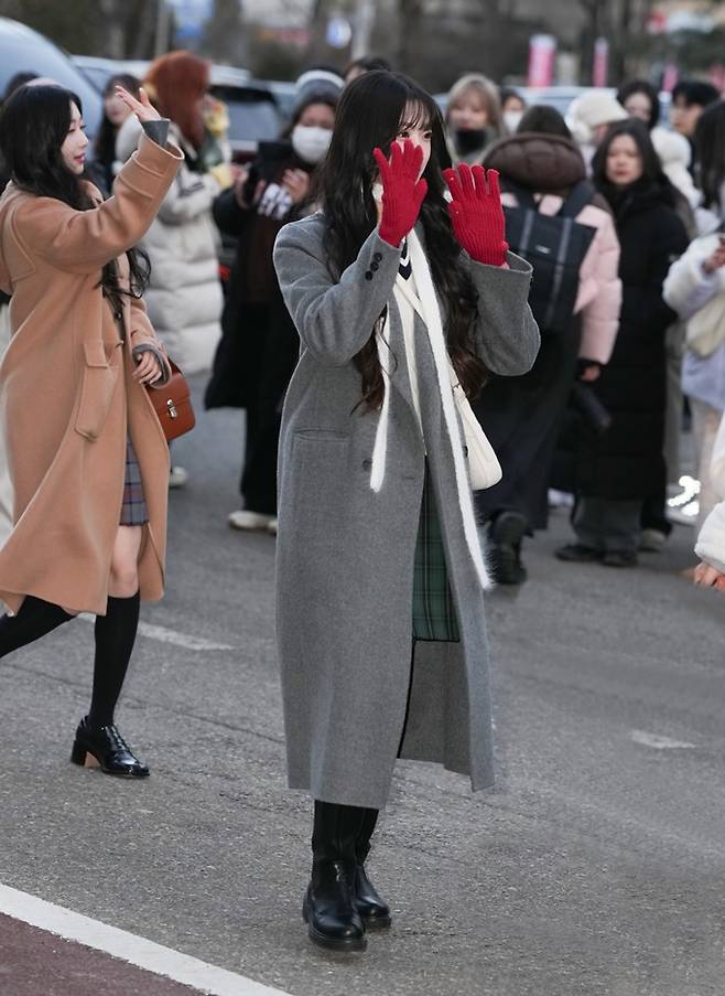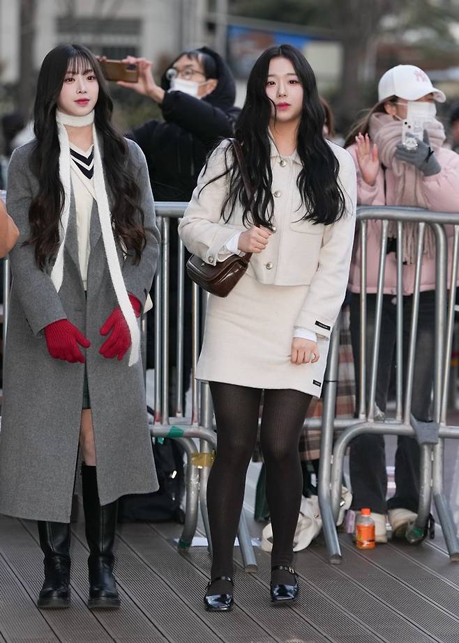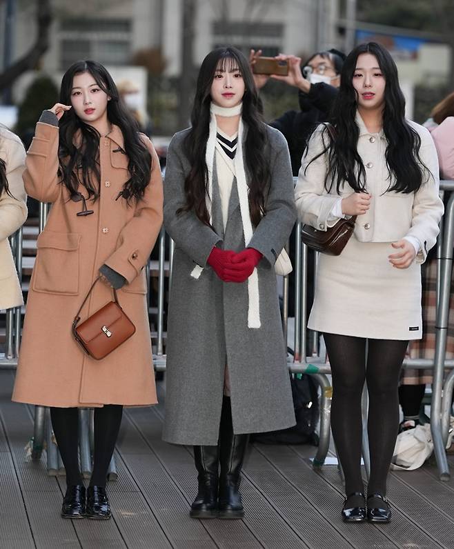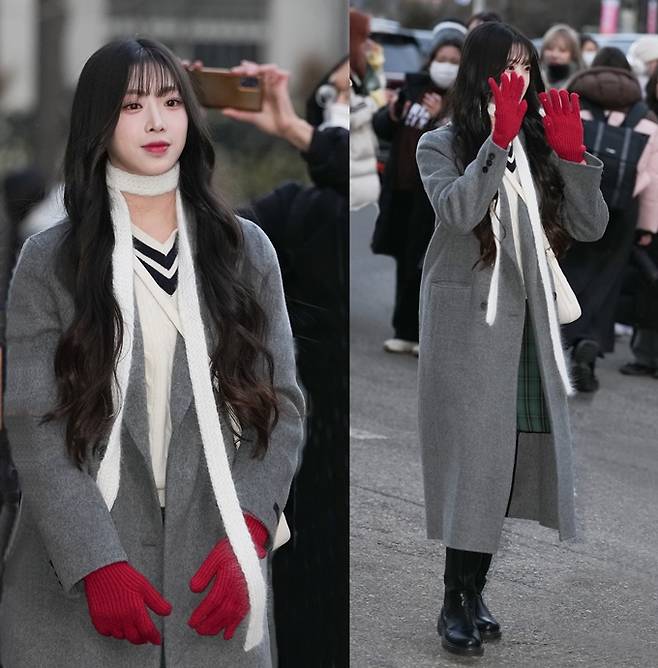 뮤직뱅크 출근길...여성복 ‘브이엔와이 스튜디오' 그레이 핸드메이드 코트룩 '인기폭발'