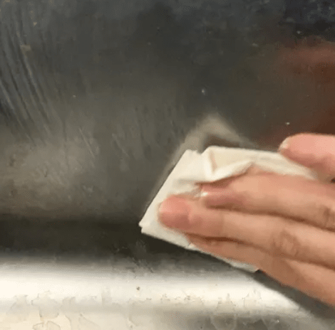 유분이 묻은 바세린이 표면을 코팅하고 묵은 때와 곰팡이를 분리해, 얼룩이 쉽게 닦여 나옵니다.