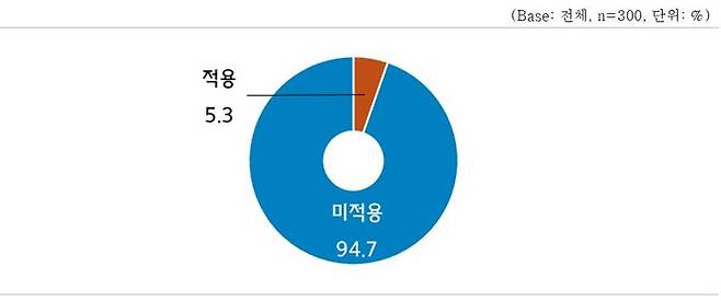 국내 상황은 어떨까. 국내 중소기업 10곳 중 9곳은 AI를 활용하지 않는 것으로 나타났다. 중소기업중앙회(중기중앙회)는 지난 달 '중소기업 인공지능 활용의향 실태조사'를 통해 AI를 적용 중인 국내 중소기업은 5.3%에 그쳤고, 적용하지 않은 기업은 94.7%에 달했다고 발표했다.