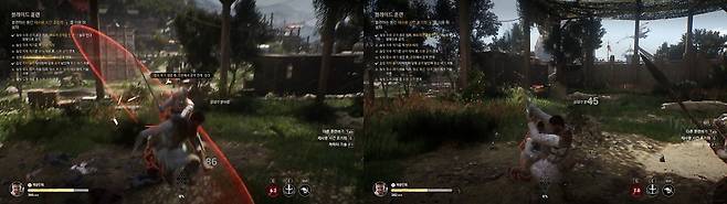 Q, W, E 같은 스킬 버튼을 눌러 사용하는 것 외에도 여러 조작을 조합하는 기술 등을 가르쳐주는데, 단순히 해보고 끝이 아니라 움직이는 더미를 통해 공격 거리나 판정 등의 세부 사항을 몸으로 익힐 수 있다는 게 좋았습니다. 하지만 더미가 어떤 행동을 할지는 무작위라서 가드를 해체하는 공격을 연습할 때는 다소 불편했는데요, 나중에는 격투게임의 연습모드처럼 더미의 행동 패턴을 직접 설정할 수 있으면 더 좋은 연습이 되지 않을까 싶습니다.