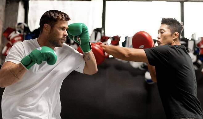 UFC 선수 출신 방송인 김동현과 링 위에서 주먹을 겨루는 모습이 게재되어서 흥미를 자아냈다. 이는 작품 촬영이 아닌 크리스 헴스워스가 직접 출연하는 디즈니+ 다큐멘터리 시리즈 '리미트리스'의 시즌 2의 장면들 이었다. '리미트리스'는 크리스 헴스워스가 장수의 비밀을 풀고자 저명한 전문가들의 도움을 받아 여섯 가지 극한의 과제에 도전하는 내용을 담았다. 크리스 헴스워스 본인이 고층 건물에 설치된 크레인 걷기부터 팔십 대 노인으로 살아보는 체험을 경험해 다양한 삶을 경험하는 내용이었다.