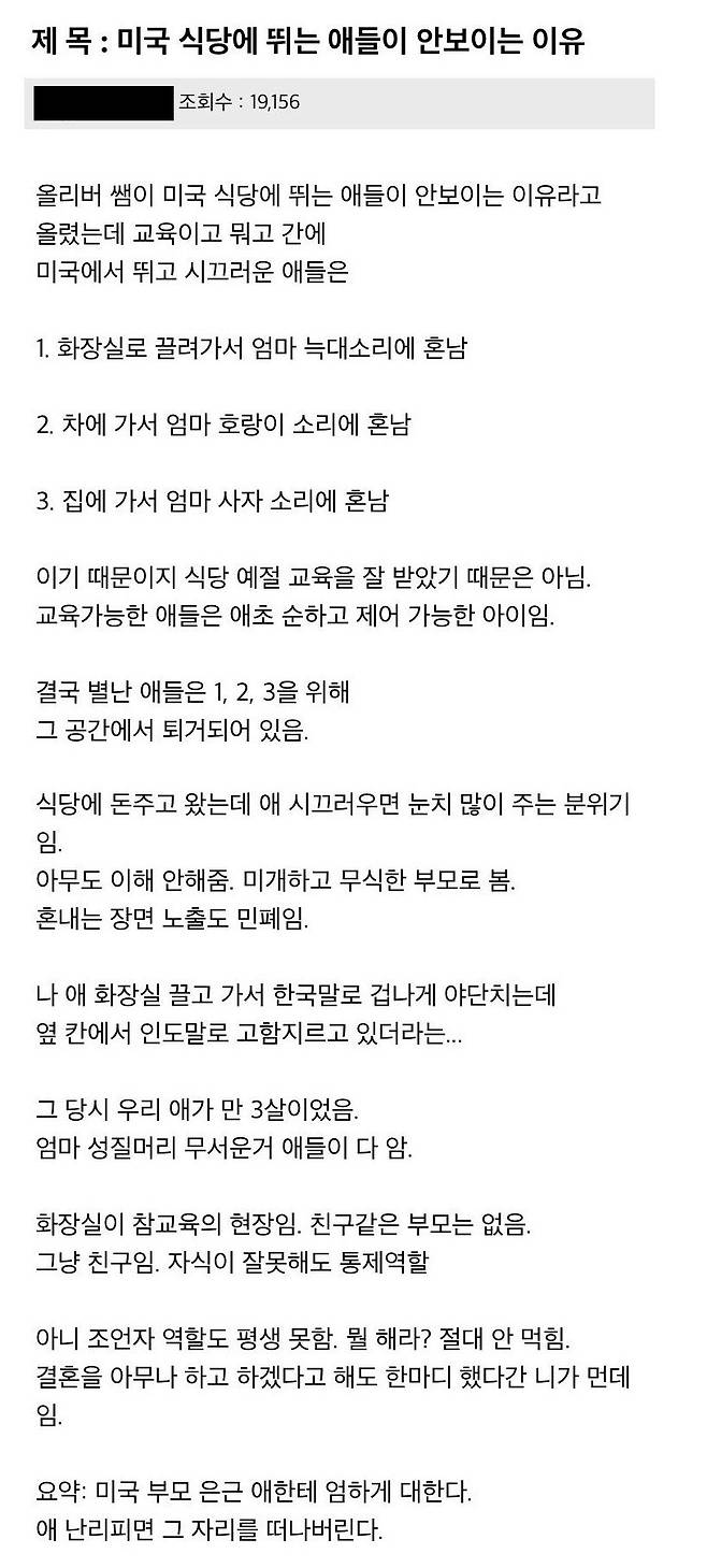 미국 식당에서 금쪽이들이 안 보이는 이유