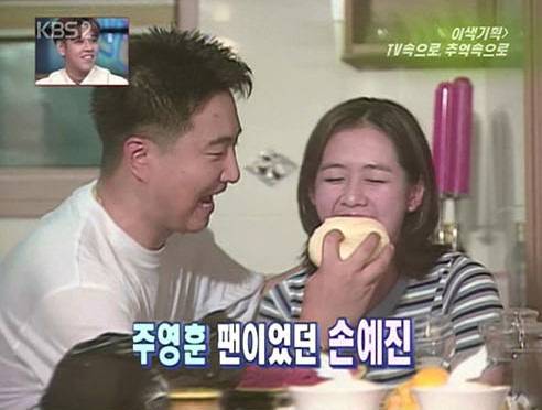 당시 방송에서 손예진은 고등학생으로 데뷔 전이었습니다. 프로그램 상 주영훈을 만나기 위해 펼쳐진 대결에서 1등을 차지한 손예진은 주영훈의 열렬한 팬으로 주영훈의 집에 찾아가 즐거운 시간을 보냈습니다. 사진 속 손예진은 주영훈을 만나자마자 달려가 포옹을 하며 반가움을 표했고 주영훈이 직접 먹여주는 호빵에 행복에 겨운 표정을 지어 눈길을 끌었습니다.