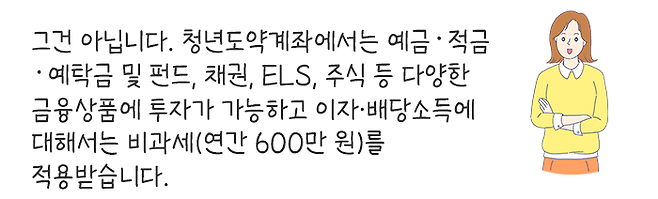 그리고 2025년까지 가입하는 경우에는 해당 저축에서 발생하는 이자소득의 합계액에 대해서 500만 원까지 비과세입니다. (납입한도 100만 원으로 상향)