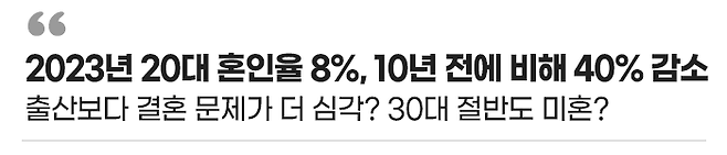 출산보다 결혼 문제 더 심각? 2030세대의 결혼 기피 현상