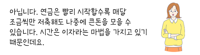게다가 일찍 시작할수록 노후에 받을 수 있는 금액이 훨씬 커지는데요.