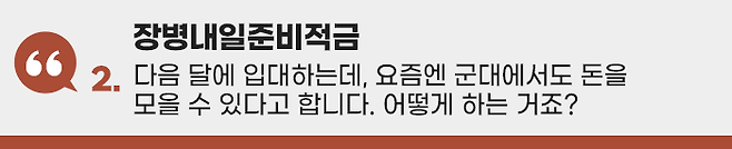 장병내일준비적금이란 병역의무 이행기간 중 급여를 적립하여 전역 후 목돈을 마련할 수 있는 적금제도로 개인별 2개 계좌(은행별 1개만)까지 개설이 가능합니다.