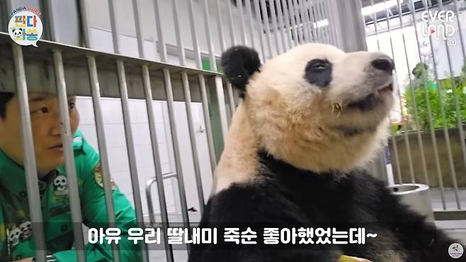송 사육사는 아이바오에게 죽순을 주면서 푸바오 근황을 직접 들려줘 애정을 보여줬는데, 그때 아이바오가 보인 반응과 표정이 안도하는 것처럼 보여 뭉클함을 자아냅니다.