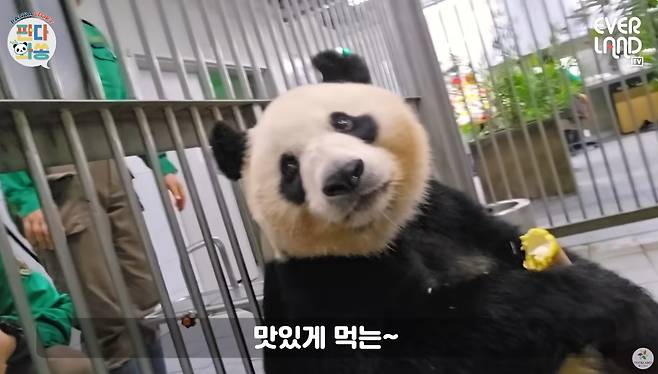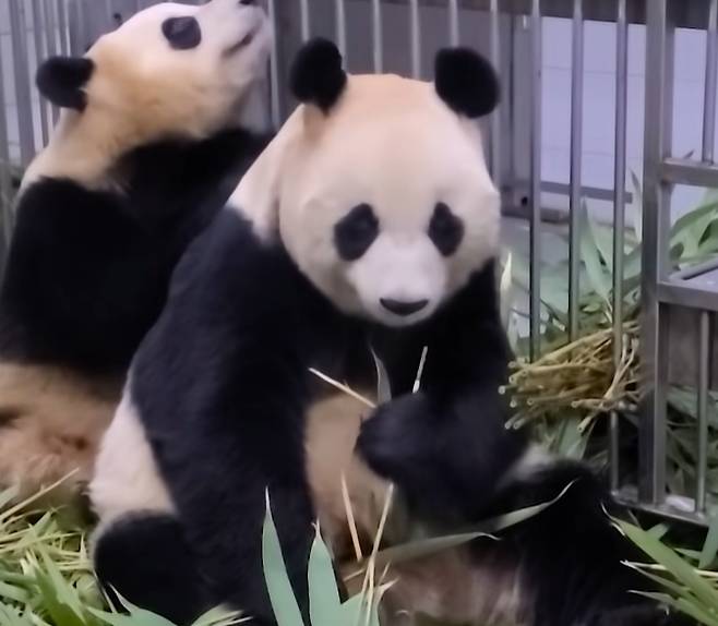 아이바오가 죽순을 맛있게 먹자 송영관 사육사는 “죽순의 계절이 돌아왔는데 우리 쌍둥이들에게도 죽순 맛을 보여줬다”며 “죽순 맛있게 먹는 우리 아이바오. 맛있나. 죽순 왕건이 줬다. 맛있게 먹어야 한다”고 말했는데요.