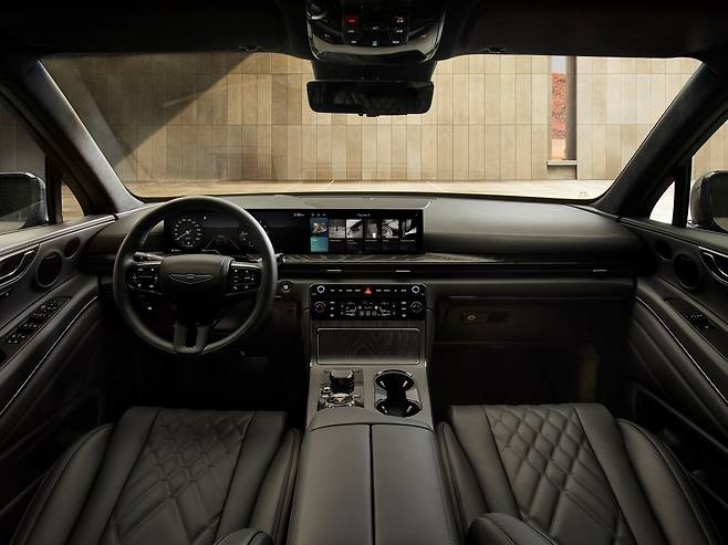 또 유광 검은 색상의 22인치 휠과 블랙 전용 플로팅 바퀴덮개를 기본 적용했다. 테일게이트에는 다크 메탈릭 색상의 제네시스 엠블럼만 배치했다.