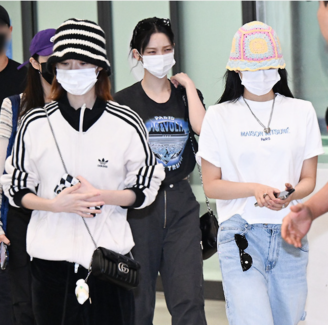 윈터의 착장을 보면 알 수 있듯, 저지는 스커트·찢청·미니백·버킷햇 등 다양한 아이템과도 이질감 없이 어우러진다.